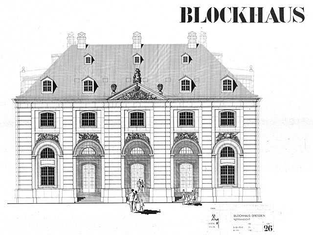 Erbaut 1732 bis 1739 im klassizistisch beeinflussten Barock von Zacharias Longuelune. Zerstörung 13. Februar 1945. Wiederaufbau als Wohnbezirksgaststätte und Haus der DSF (Deutsch-Sowjetische-Freundschaft) von 1970 bis 1974 unter Leitung des Architekten Dipl. Ing. Manfred Arlt. Anerkennung seiner Leistung durch den sowjetischen Botschafter mit Überreichung der Ehrennadel der DSF in Gold sowie Anbringung der Ehrentafel mit Danksagung in den Akaden des Eingangsbereichs.