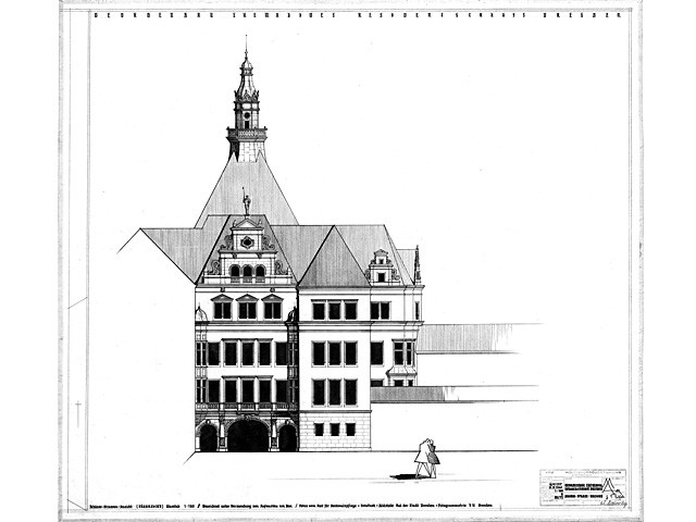 Errichtung 1530 bis 1535, Umbau 1889 bis 1902 von den Architekten Dunger und Frölich. Zerstörung 13. Februar 1945. Wiederaufbau im Baustil der Renaissance 1960 bis 1963 unter Leitung des Architekten Dipl. Ing. Manfred Arlt. Erstnutzung als Rechenzentrum der Stadt Dresden durch Aufstellung des ersten Großrechners R-300.