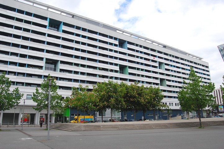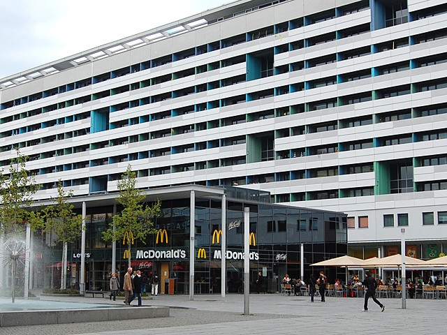 Erbaut in den 70er Jahren nach Entwürfen und unter Leitung des Architekten Dipl. Ing. Manfred Arlt in Stahlbetonfertigteilbauweise. Die Wohnzeile ist 240m lang und ist damit das längste Wohngebäude in Deutschland. Das Gebäude steht als sozialistisches Wohnkulturgut heute unter Denkmalschutz.